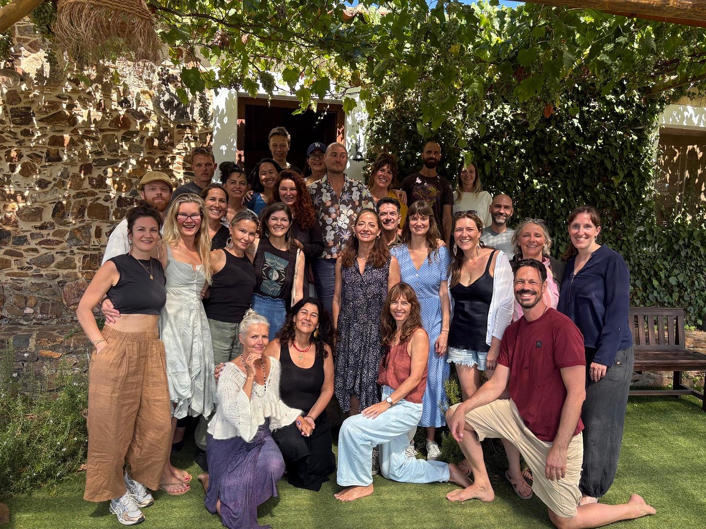 Spending these last days in a sunlight-filled room in the middle of a Portuguese valley with a group of 30 people all dedicated to living and leading fully embodied, to connecting through the heart, to cultivating healthy, thriving relationships was deeply nourishing. Sweating in the midday sun (clothes on I should add!) as we practiced connecting with each other in these new ways, and learning how to teach and guide these experiences for others, has given me a renewed embodied aliveness.